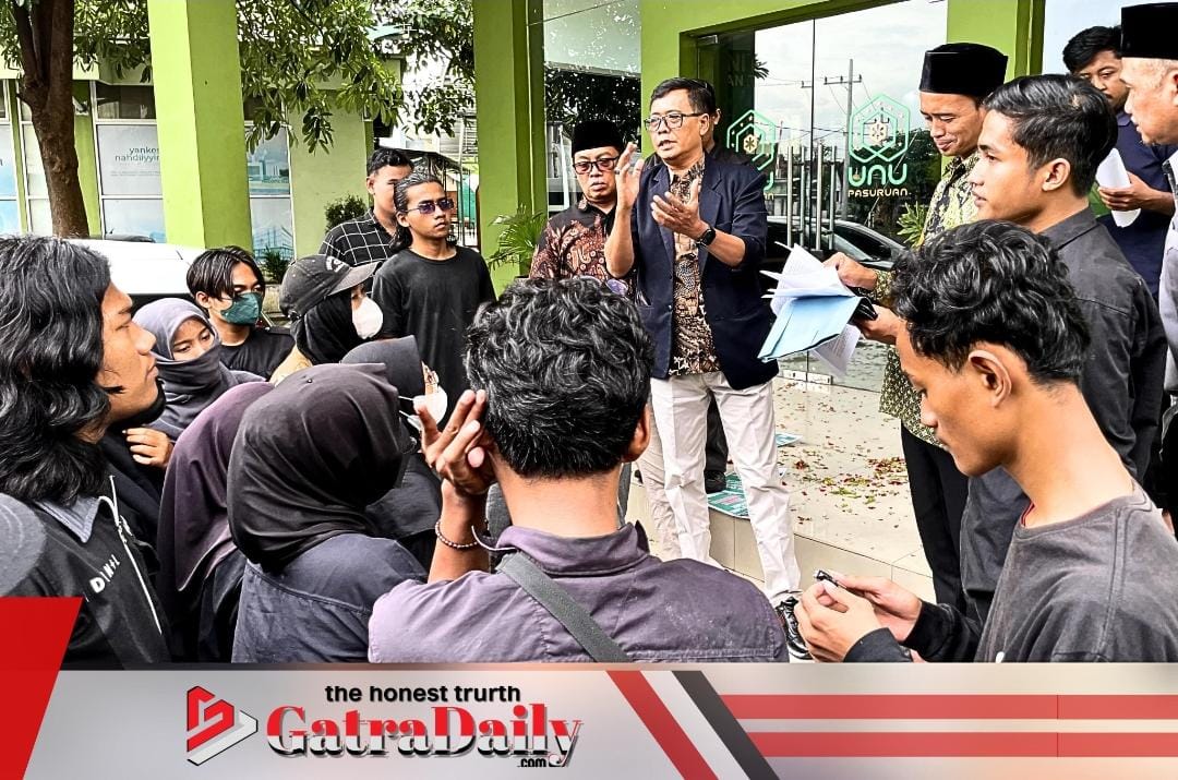 Situasi berangsur kondusif setelah Rektor UNU Pasuruan turun langsung menemui mahasiswa dan menggelar audiensi terbuka di halaman kampus.