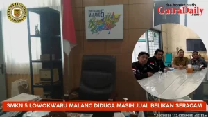 “Gubernur Jawa timur Khofifah Indar Parawansa sudah tegas melarang sekolahan SMKN, SMAN, SLB menjual belikan seragam sekolah tentunya ini yang menjadi acuan kami atau dasar hukum untuk melaporkan pihak SMKN 5 Malang ke Aparat Penegak Hukum, atas dugaan Pungli, jika somasi kami tidak di tindak lanjuti,”tegasnya.(SH/red)