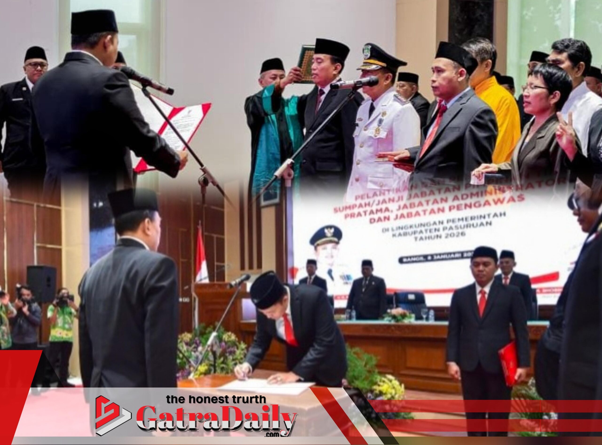 PASURUAN | gatradaily.com – Bupati Pasuruan Rusdi Sutejo melantik sebanyak 297 pejabat di lingkungan Pemerintah Kabupaten Pasuruan. Pelantikan digelar di Auditorium Mpu Sindok, Kompleks Kantor Bupati Pasuruan, Kamis (8/1/2026) siang.