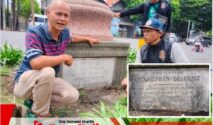 Jurnalis dan LSM Bersihkan Monumen “Kewadjiban Beladjar” Peninggalan Soekarno di Pasuruan