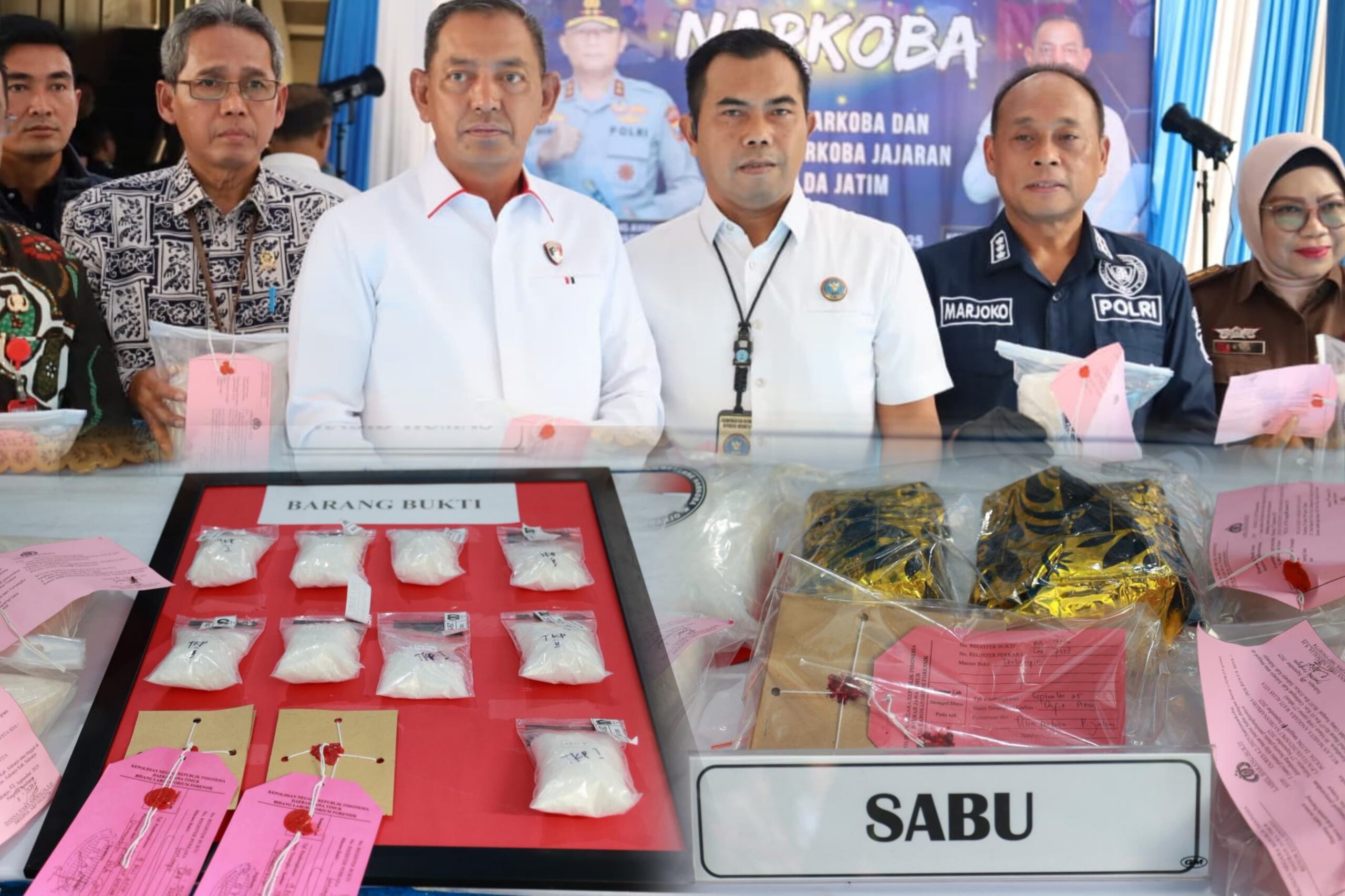 Pada Juni 2025, Polda Jatim memusnahkan 49 kilogram sabu, 2.860 butir ekstasi, serta 5.688.600 butir obat keras.