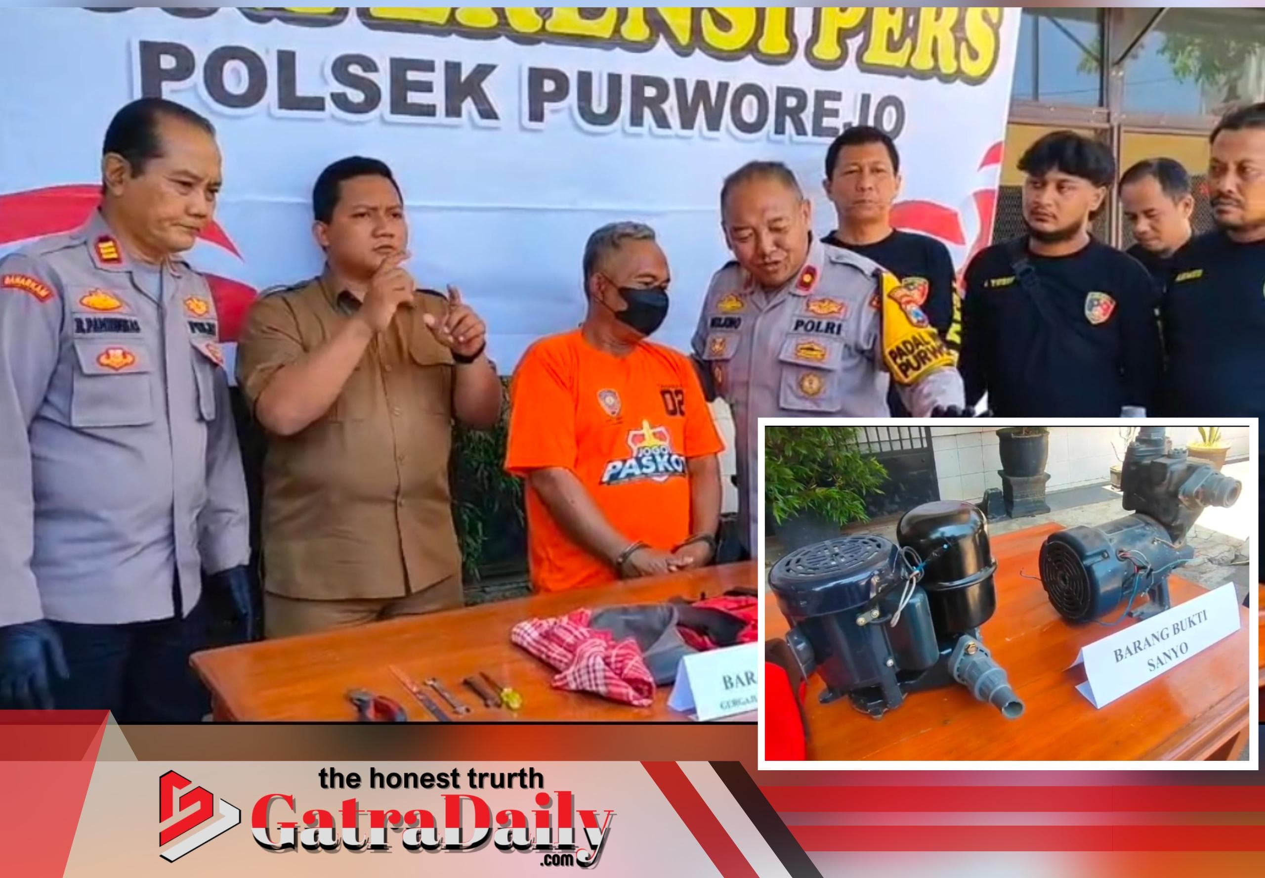KOTA PASURUAN | gatradaily.com — Unit Reskrim Polsek Purworejo, Kota Pasuruan, Jawa Timur, menangkap seorang pria bernama Nur Cholis, warga Desa Ngabar, Kecamatan Kraton, Kabupaten Pasuruan, yang diduga menjadi pelaku pencurian pompa air di sejumlah tempat ibadah.