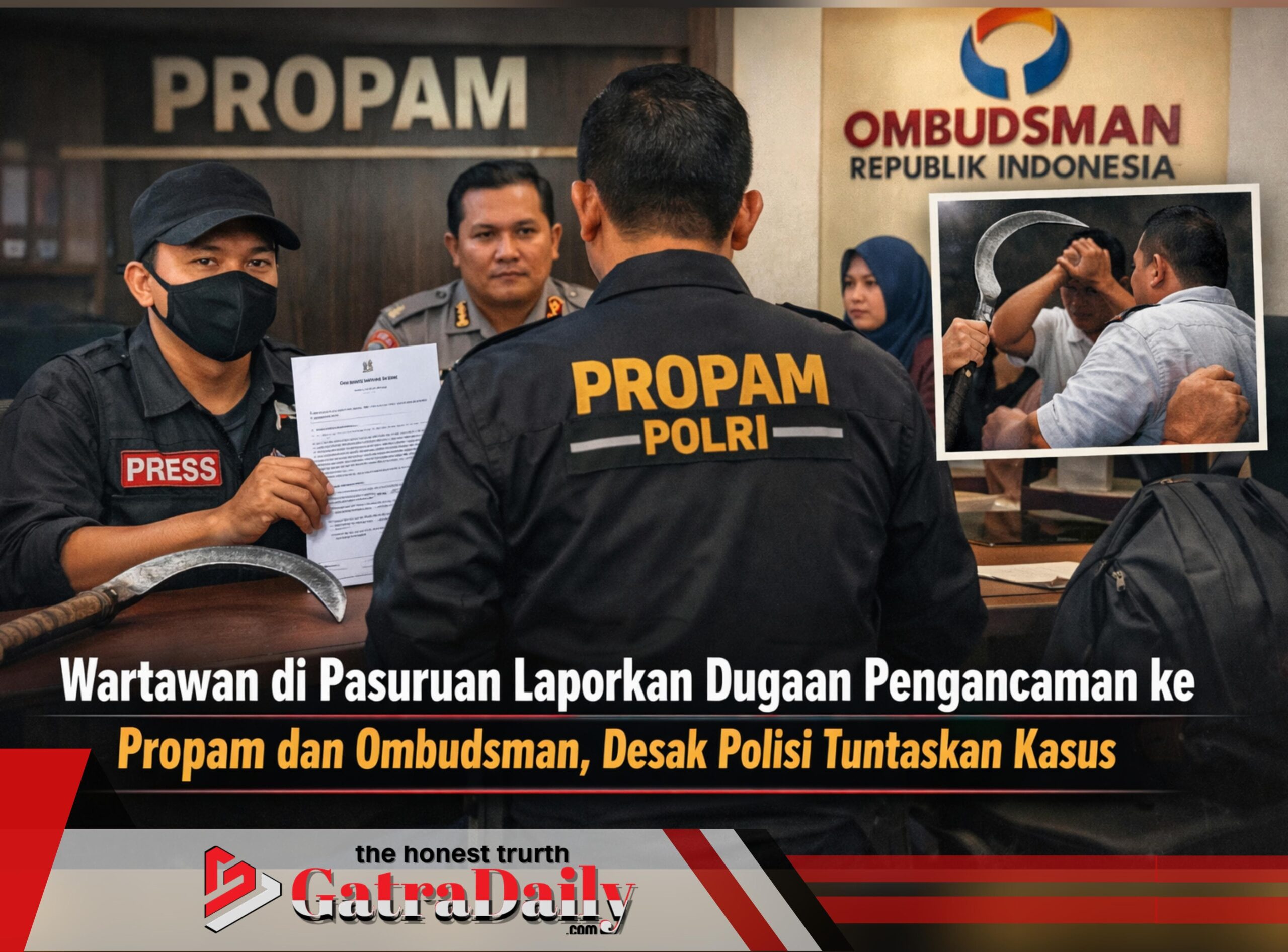 KOTA PASURUAN | gatradaily.com – Kasus dugaan pengancaman dengan senjata tajam yang dialami seorang wartawan di Kabupaten Pasuruan berbuntut panjang.